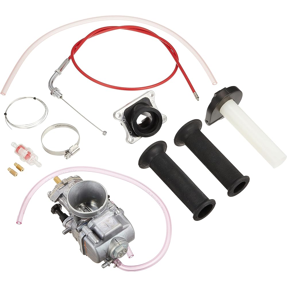 Keihin PWKφ28 carburetor recommended for high-tuned engines. The large diameter of φ28 and the technology cultivated in racing, such as flat valves, achieve sharp acceleration. The attached manifold increases the port diameter and increases the intake air volume. Precautions for use *Standard air cleaner cannot be used. *When installing on NS-1, the helmet BOX must be removed or modified. *NSR50/80, NS-1 ('95-) cannot be used with normal intake chamber. *MBX50 requires some cutting of the rubber part at the bottom of the manifold depending on the model year.
