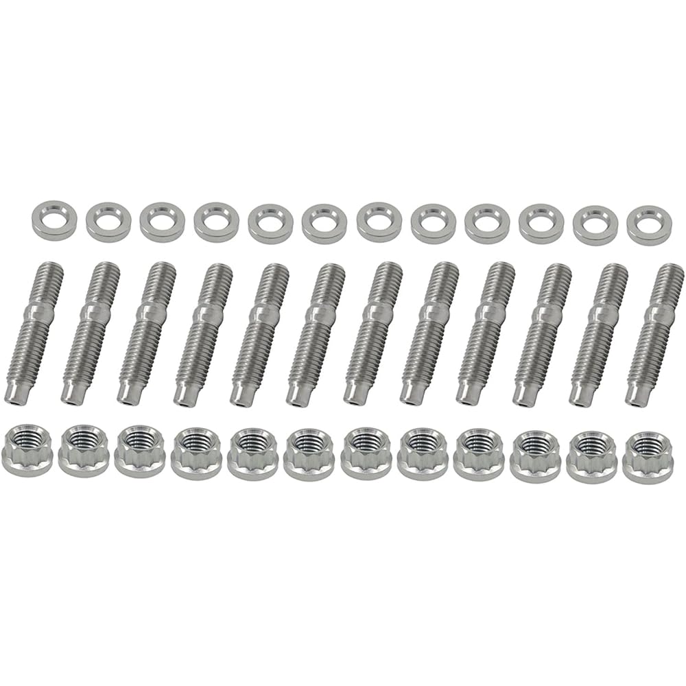 [Anti-Rust/Anti-Crack] This replacement manifold & parts are made of aerospace grade 6AL4V titanium. The advantages of titanium alloy are its light weight, corrosion resistance and high strength, so it will not corrode or rust. Lightweight, sporty and aggressive appearance. 【Direct Replacement】This exhaust manifold hardware kit matches the original hardware needed to secure the exhaust manifold to your specific vehicle's engine. 【Durable Construction】Titanium exhaust manifold stud kit is made of titanium GR5, high performance, strong and never fade. [Specifications] Color: Original; Size: M8X1.25X55MM; Weight: 12 pieces/0.157kg; The set of 12 studs/washers/nut assemblies weighs only 0.157kg. Kit includes: 12 M8 x 1.25mm x 55mm titanium studs + 12 12-point M8x1.25mm titanium nuts + 12 M8 titanium washers. [Reliable Quality] RISON-Titanium has been focusing on titanium products for 10 years. The materia is aerospace grade titanium, made from titanium alloy GR5 TI 6AL4V, which is high performance, strong and never fade.