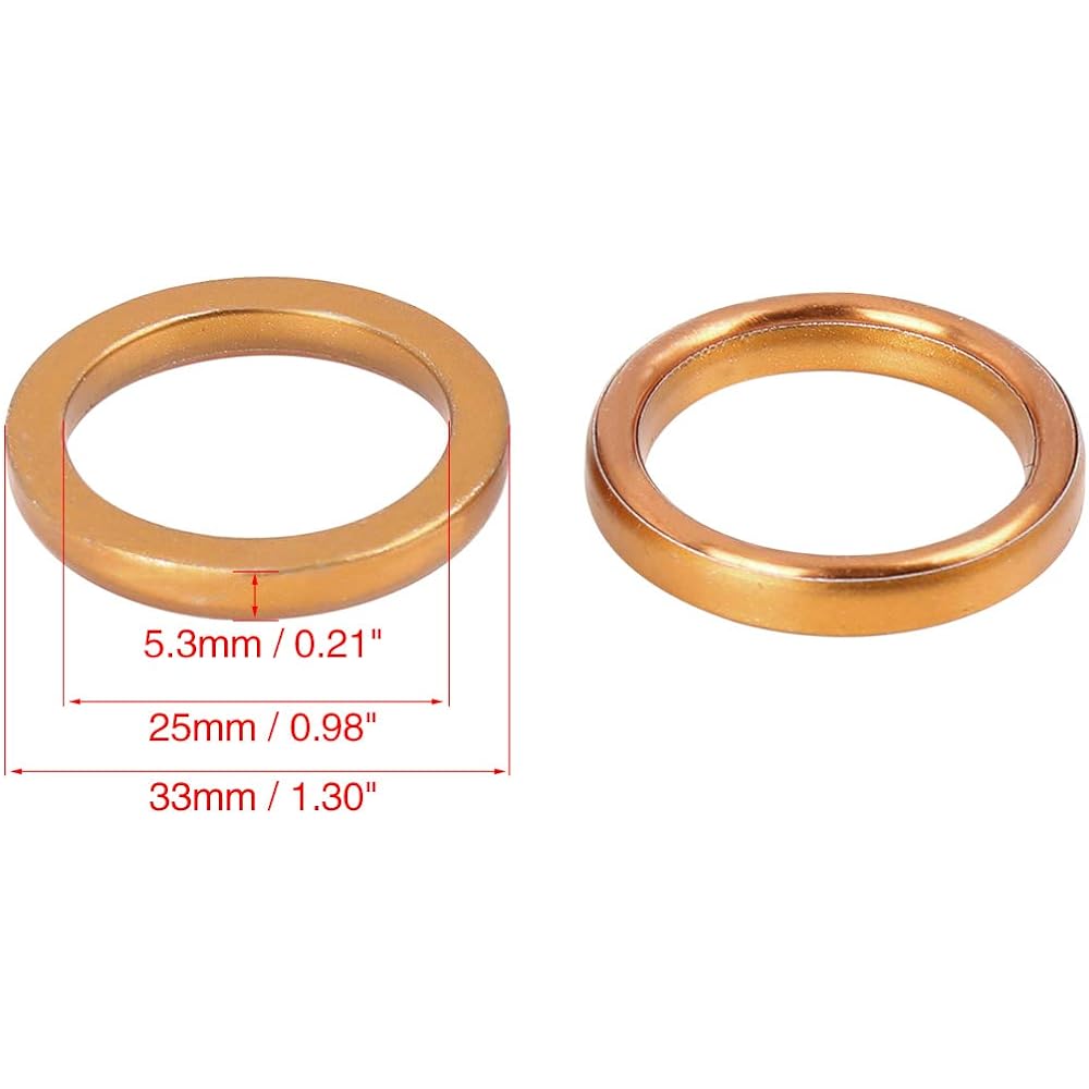Fits: Jiangling JH70 100 110 125 150CC Inner diameter: 25mm / 0.98inch Outer diameter: 33mm / 1.30inch Thickness: 5.3mm/0.21inch Package Contents: 20 x Motorcycle Exhaust Gaskets. Material: Metal material has good impact resistance effect and long lasting. Function: Reduce noise and make your bike more stable and comfortable.