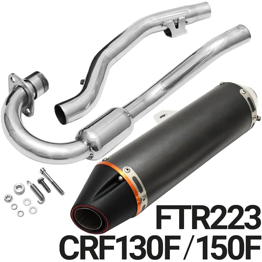 This is an aftermarket muffler. The contents of the product are all shown in the second image. [Reference compatible models] CRF230F 2003-2013 CRF150F 2003-2013 FTR223 [Note] *Instruction manual is not included. *For installation, please contact a professional company. *Depending on the vehicle model, you may need to process the stay, prepare a separate installation stay, or use spacers, etc. *Not compatible with vehicle inspection and cannot be driven on public roads. Please use at racetracks, events, etc. *The volume does not meet standards such as proximity noise or JMCA mark or E mark.