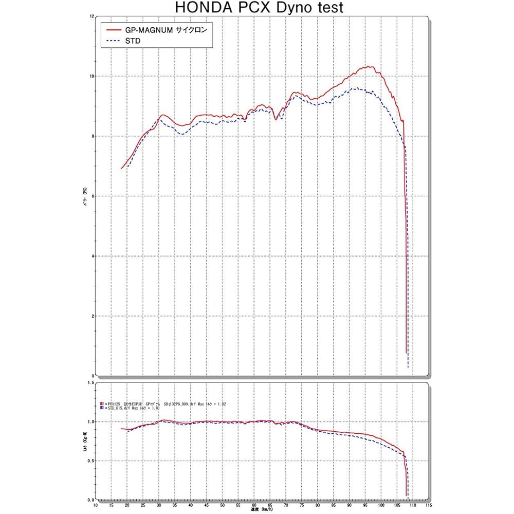 ■Government certified muffler JMCA certified ■Exhaust gas regulation compliant product Noise regulation compliant product ■2 year warranty included ■Vehicle model 2BJ-JF81 ■Engine model JF81E ■Vehicle exhaust gas test result certificate (gas report) available ■Proximity exhaust noise 90dB/ 4,275 rpm ■Acceleration noise 77dB ■Separately required parts Honda genuine exhaust gasket ■Oil can be changed with the muffler attached ■Can be attached to the genuine center stand GP-MAGNUM is lightweight and simple round shape, and has a silencer while being a traditional Yoshimura muffler. It also reflects the new design, such as changing the mounting from a band to a bracket. The combination of the exhaust pipe set exclusively for the PCX125 and the GP-MAGUM silencer with a length of 300 mm and a diameter of 90 mm produces a gentle rise in power and a large increase in power in the low and high rotation ranges, responding to rider operations. It has achieved power characteristics that are easy to handle and do not react too sensitively. The weight of GP-MAGNUM is 2.7kg (carbon cover) compared to STD 5.3kg, which is 2.6kg lighter. Achieves a light running experience. GP-MAGUN, which has stripped away everything except the essentials, has a functional beauty created by generously investing Yoshimura's know-how.