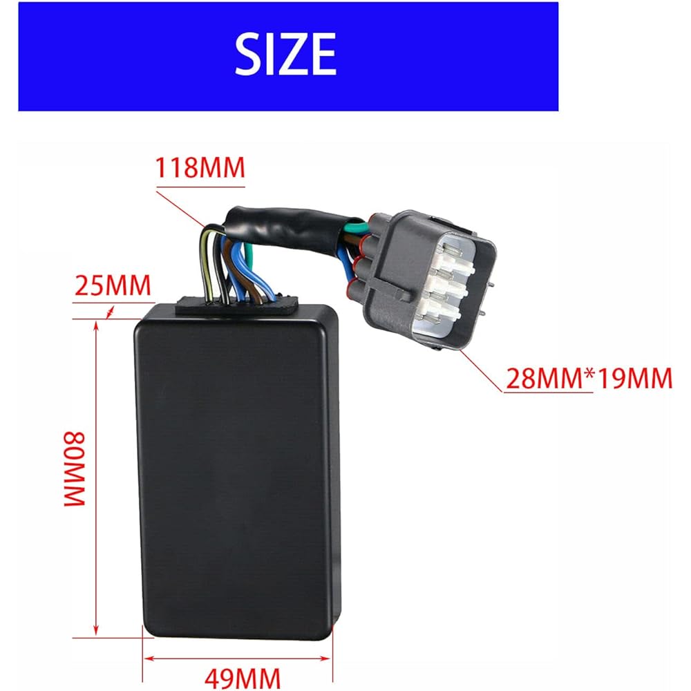 Replaces: 1998-2000 Honda TRX 300 Honda TRX300 FW Fourtrax Honda TRX300FW Replaces 30410-HM5-A10. 30410-HM5-A11. 30410-HM5-S01 30400-HM5-506. Dimensions: Height: 23mm Length: 92mm Width: 55mm Other specifications: Number of plugs: 1 Number of pins: 8 Package contents: CDI box x 1.