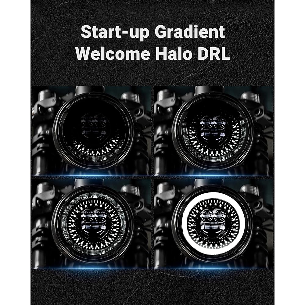 HWSTAR 2023 1000% Brightness Anti-Glare 7 Inch LED Headlight Motorcycle Kit Compatible with Harley-Davidson Touring Ultra Classic Fat Boy and More DOT Startup Gradient Starry Atmosphere Welcome DRL