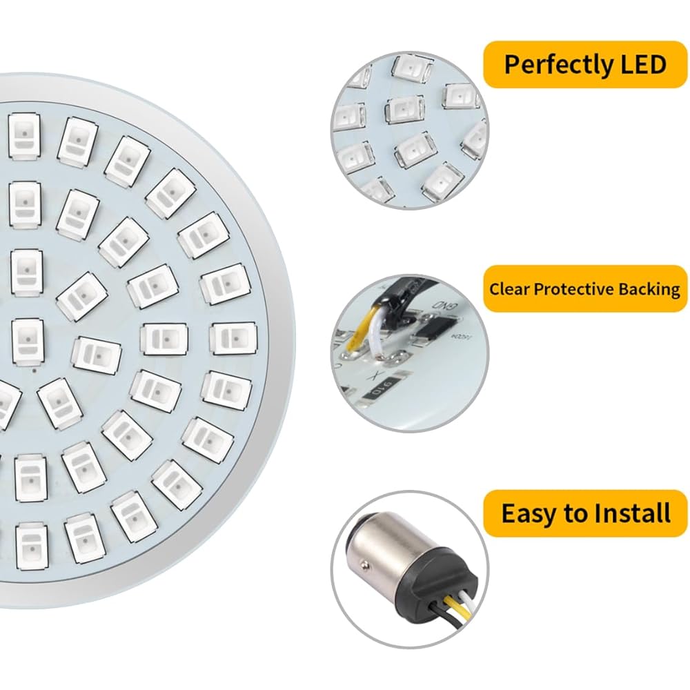 ▶Compatibility - Aftermarket LED SMD turn signal bulbs are compatible with Harley-Davidson models with 2" standard bullet style turn signal lights and 1157 sockets. Will not fit 3-1/4" flat style turn signals. ▶Front LED Turn Signal Bulb - Switchback model, white for running lights, amber for front turn signals, high brightness and low power consumption, increases visibility and provides new lighting patterns. ▶Rear LED Turn Signal Bulb - Red rear SMD turn signal bulb integrates a tail light with brake light and running light functions. ▶Outstanding Performance - LED SMD bulb with 1157 double contract plug is much brighter than traditional bulbs, consumes less power and lasts longer. Package Content - 2 Front Turn Signal Light Bulbs, 2 Rear Turn Signal Light Bulbs. Instructions are not included.