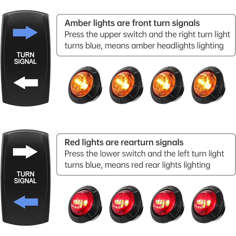 UTV Turn Signal Kit ATV Street Legal Kit with Turn Signal Rocker Switch Compatible with Polaris RZR Ranger Turbo Can-am Side-by-Side Turn Signal Light Kit