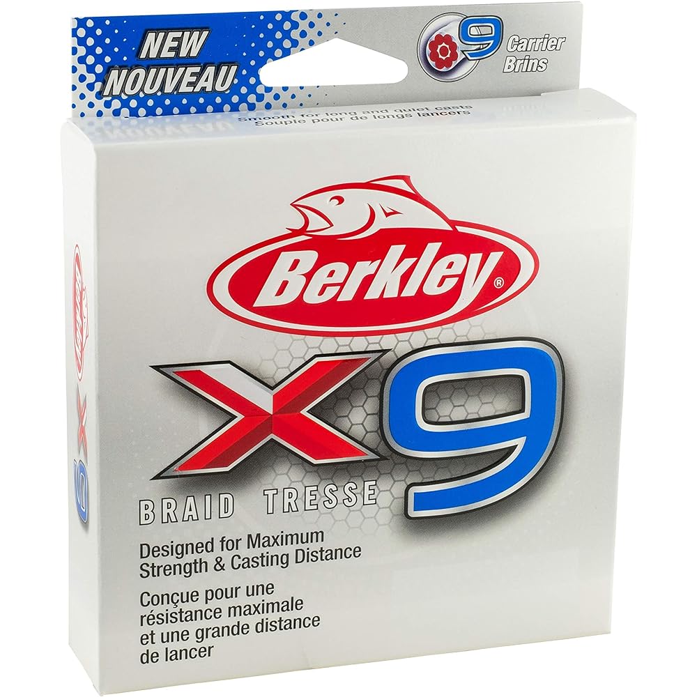 BERKLEY X9 Braid: Don't let the fish off the hook. This line is made with 100% PE fiber and won't disappoint with reliability. The innovative design adds layers to the standard 8 strand fishing line braid for unmatched tensile strength. Distance Matters: This braided fishing line allows for quiet and effortless casting, allowing you to land your lure where you want it. High Strength Braided Fishing Line Per Meter Diameter: This 9 strand fishing line provides a breaking strength of 80 lbs test | 100 lbs | 45.6kg. Blade length: 295 yards | 270m. Low Vis Green hides the presence of lines for a perfect presentation. Incredibly Smooth Reel: Braided line designed to glide the reel from cast to back again for improved maneuverability. Available in a wide range of breaking strengths from 8 lbs. to 100 lbs. The 0.40mm diameter class | 0.000 inch class will ensure an exciting fight. Super line mono equivalent: 20 pounds.