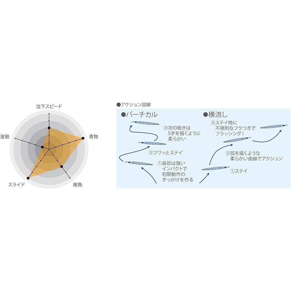 Appeal with intense slides and flushing falls! Actions that cut through the tide generate small waves and appeal to targets who dislike pressure. The sliding performance unique to iron jigs has been further sublimated, and combined with the appeal in the fall, it realizes the ideal action. This jig is also attractive because of its very light operability.