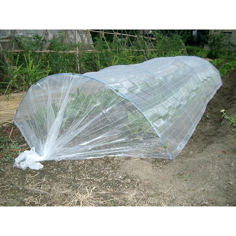Insect nets are an effective pest control method that can be used in all situations, including growing leafy vegetables outdoors. Ideal for tunnel cultivation and potted cultivation, and the approximately 1mm mesh prevents insects from entering. It also has a repellent effect as it contains "silver thread" that insects hate. Approximately 90% of sunlight passes through the net, and watering can be done from above, so there is no need to remove it from seeding to harvest. Features/Effects Precisely woven net mesh (approximately 1mm mesh) physically prevents pests. Allows approximately 90% of sunlight to pass through. Watering can be done from above the net. Contains "silver thread" that insects dislike. Can be used for tunnel cultivation and wall cultivation. Helps grow with reduced or no pesticides, and also keeps out pests. To make the net even more effective, when installing the net after exterminating pests, bury the bottom of the net in the soil so that there are no gaps as much as possible. If high temperatures continue in midsummer, there is a risk of growth failure due to high temperatures. Please thoroughly exterminate pests before installing the net. After installing the net, continue to closely monitor the crops and exterminate pests if necessary.