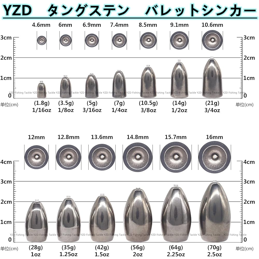 YZD Tungsten Bullet Sinker TG 56g 2oz [2 pieces, 5 pieces, 10 pieces]