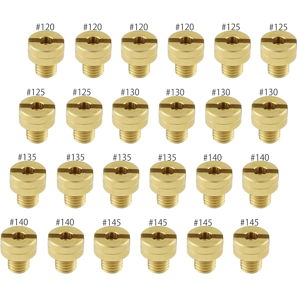 [Set contents] #120#125#130#135#140#145 4 pieces each (24pcs) [Type] (8X9) Mikuni (Marudai) ◆ Oversize jet set If you change the tuned engine or exhaust system, you will need it What comes next is the cab setting. First of all, change the main jet and pilot jet. Even the difference in number one can greatly affect performance. An oversized main jet and oversized pilot jet set that allows you to create settings that match the “Parts” that you have changed based on your preferences. An oversized version with a case is set according to the number of carburetors. As it is manufactured by carefully selected domestic manufacturers, the processing accuracy is also at a high level. [Compatibility] TMTMRMJN24TDMRVM22GSX1100SGSX750S (GS75X)