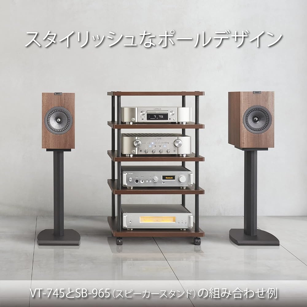 > Slim and casual open rack. Although it has a simple structure, it provides a sense of stability in sound and installation. Fully open model with excellent heat dissipation. Available in 2 sizes: low type and high type. The top and shelves are reversible. (Dark brown wood grain/matte black) With casters. (2 of them with stoppers) The connecting unit has two height settings that can be selected according to the installed equipment. (One stage can be added to VT-743/745)