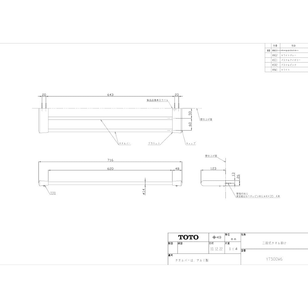 TOTO Two-tier towel rack pastel ivory YT500W6 #SC1