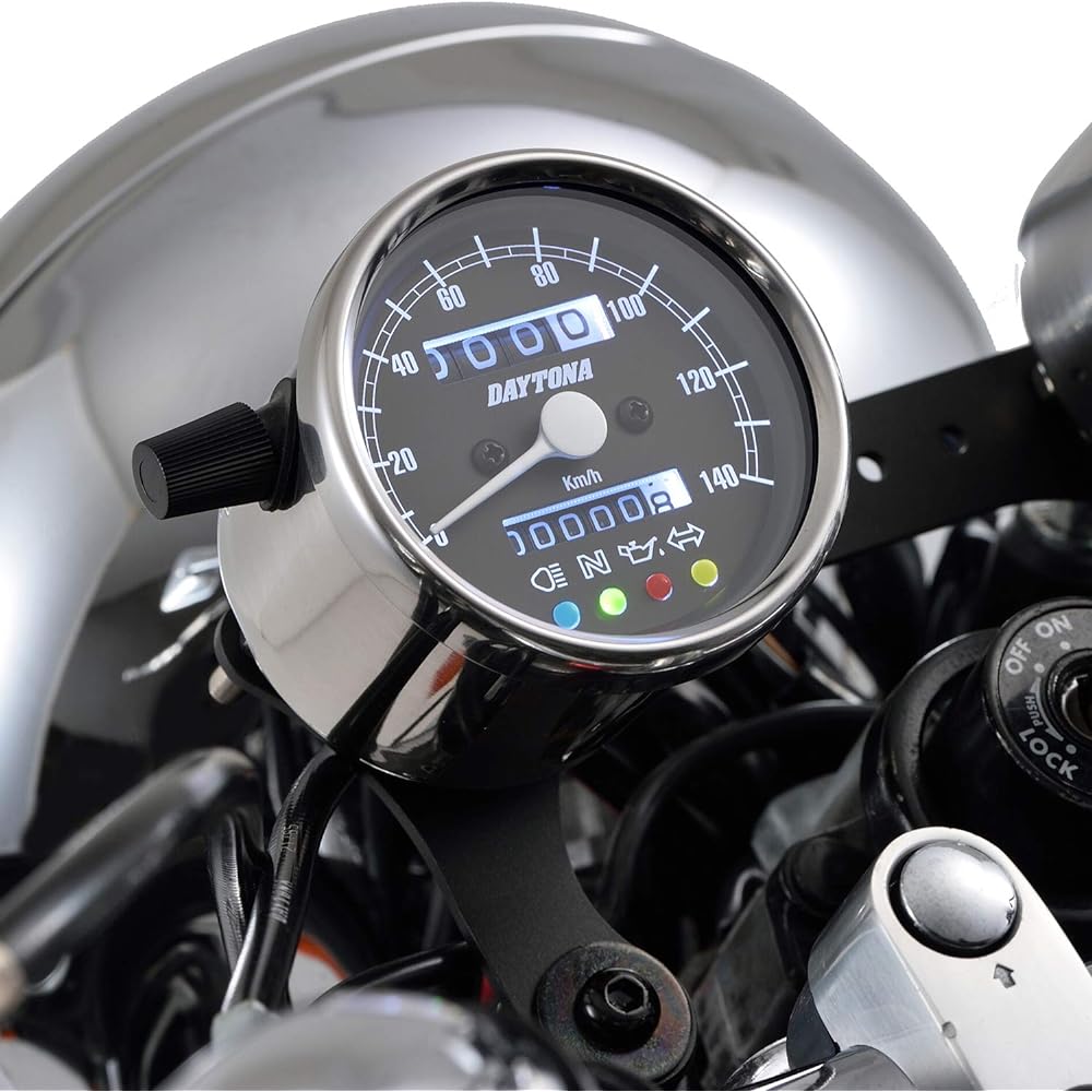 Daytona Motorcycle Mechanical Speedometer Stainless Steel Body/Black Panel/White LED φ60 140km/h Display with Indicator 15637