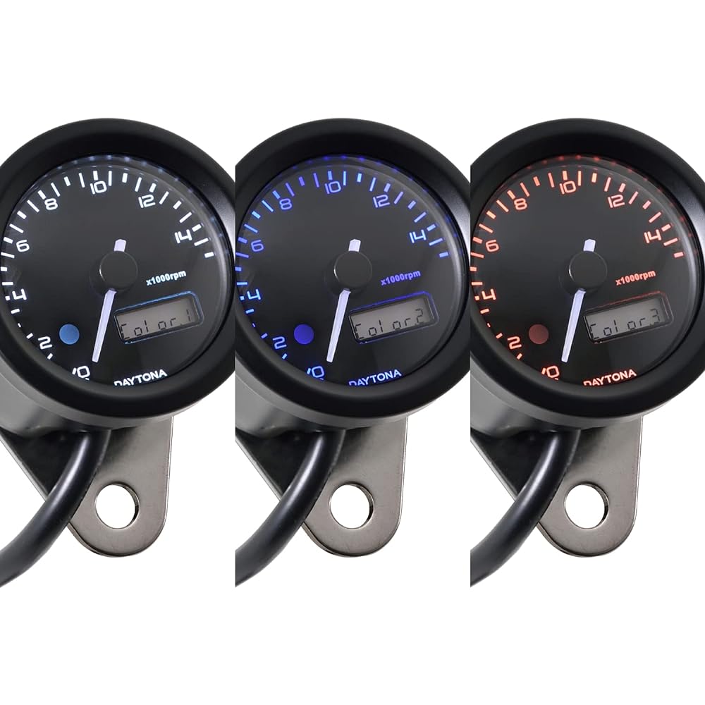 Daytona VELONA Motorcycle Electric Tachometer Black Body/3 Color LED φ48 15000rpm Display 22005