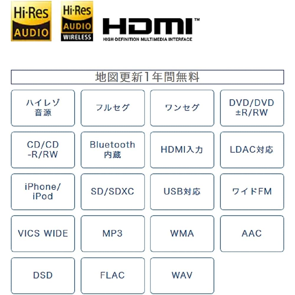 “Overwhelmingly” easy-to-read maps and operation! Equipped with "New HD Drawing Map". Equipped with 3 map colors to choose from (smart/dynamic/dark) and HDMI input. You can enjoy videos from your smartphone in HD quality on the navigation screen. (You can enjoy content from YouTube and other popular video streaming services on the large, high-definition navigation screen.) You can linearly adjust the depression angle of the 3D map, making it even easier to see! Experience studio master sound. Compatible with high-resolution sound sources (DSD/192kHz/24bit) Equipped with industry-leading playback capabilities and high-quality sound adjustment functions! Enjoy various music media with ideal sound!