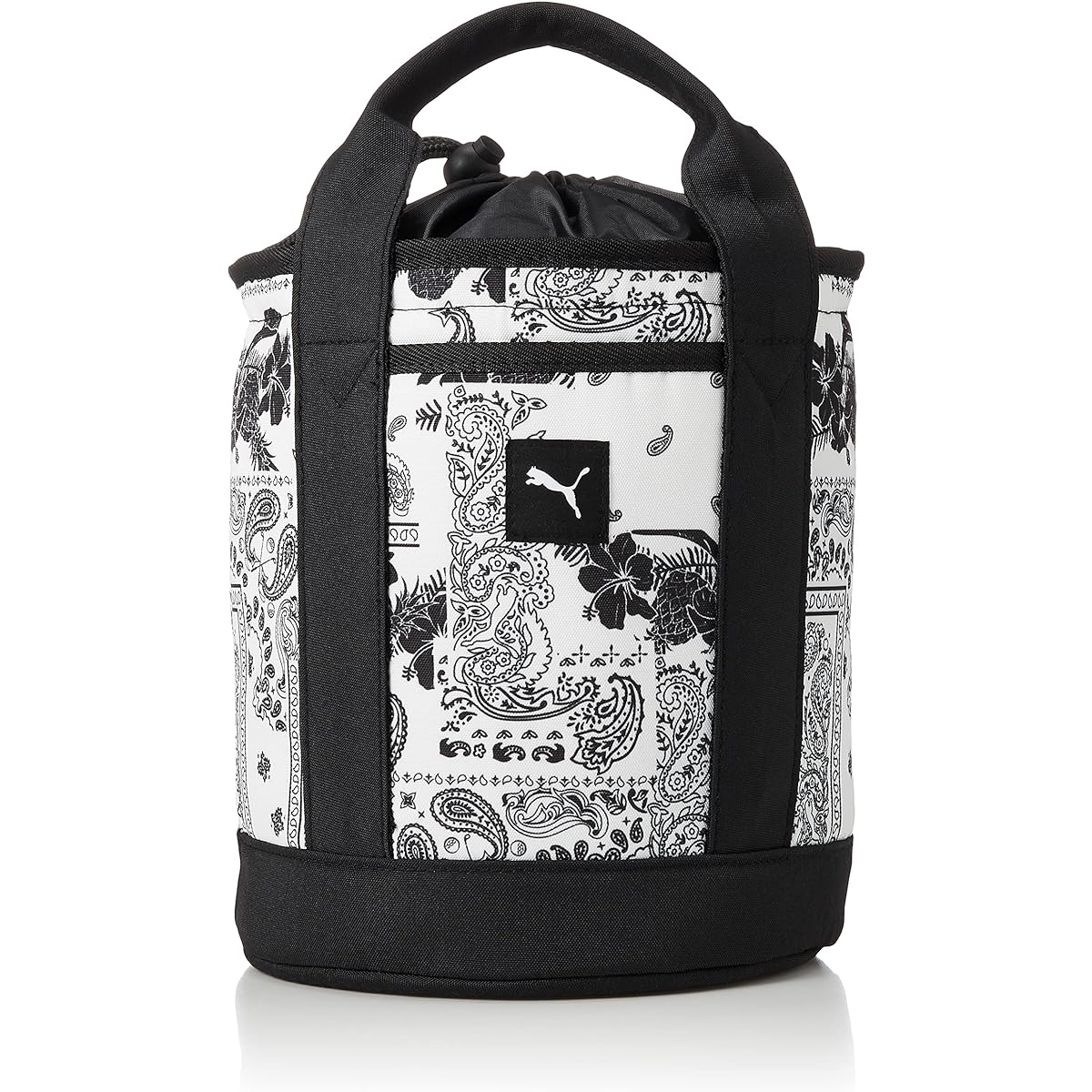 A smart, large-capacity cylindrical round tote with PUMA's original bandana pattern graphic printed on the entire surface that can securely fit a plastic bottle.You can store and carry everything from drinks in the round to small items such as tea, markers, and gloves.Materials :Polyester ■Size: W20 x H23 x D20 (cm) ■Capacity: Approximately 9L Brand introduction PUMA is a golf sports brand born in Germany in 1948, debuting with shoes and bags in 1999, and wear since 2006. In addition to continuing to propose a variety of products with a unique style, PUMA will continue to promote its brand identity by inviting unique star athletes such as Rickie Fowler, Bryson DeChambeau, and Lexi Thompson to its advisory staff. ``PUMA WILL BE THE FASTEST SPORTS BRAND IN THE WORLD.'' Our brand mission is ``to become the world's fastest brand,'' and we will continue to pursue the ``PUMA-likeness''