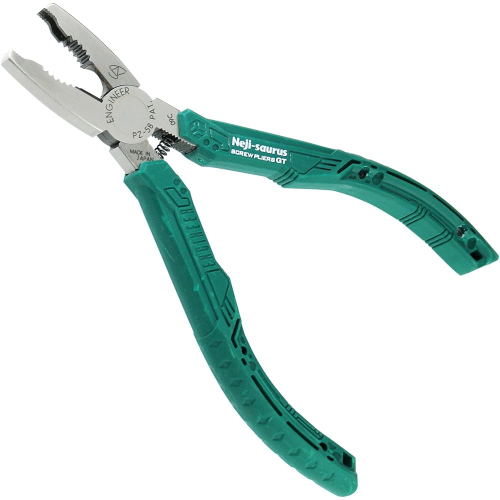 A set of screw trouble rescue tool super-evolved Nejizaurus GT and a dedicated tip protection cover that makes Nejizaurus GT more stylish! [Applications] Crushed screws, rusted screws, stuck screws, etc. Removal work [Features] Can remove various types of screws such as rusted screws, crushed screws, stuck screws, special screw heads, etc. The newly designed tip shape allows for a screw bite angle that can accommodate low-head screws (truss screws). By adjusting the blade, it is equipped with a blade that holds the screw firmly, and can also be used as pliers. It has a spring-loaded grip that makes continuous work easy. It uses an elastomer design grip that is gentle on the environment and on your hands. This is a tool, so be sure to turn off the power before working. Please wear safety glasses for your safety. Do not use on screws that do not match the size. Do not apply more force than necessary to the screws. Doing so may cause the screw head to be cut or damaged. Be careful not to injure your hands or body with the gripping part. Please do not use it instead of a hammer. Do not apply shock by hitting it with a hammer, etc. Please keep out of reach of children. - Fashionable and stylish design inspired by the Nejizaurus character "Neji the Urus" - By attaching it to the tip of the PZ-58, it will not spread even when placed in a tool box - Made of environmentally friendly elastomer Adoption