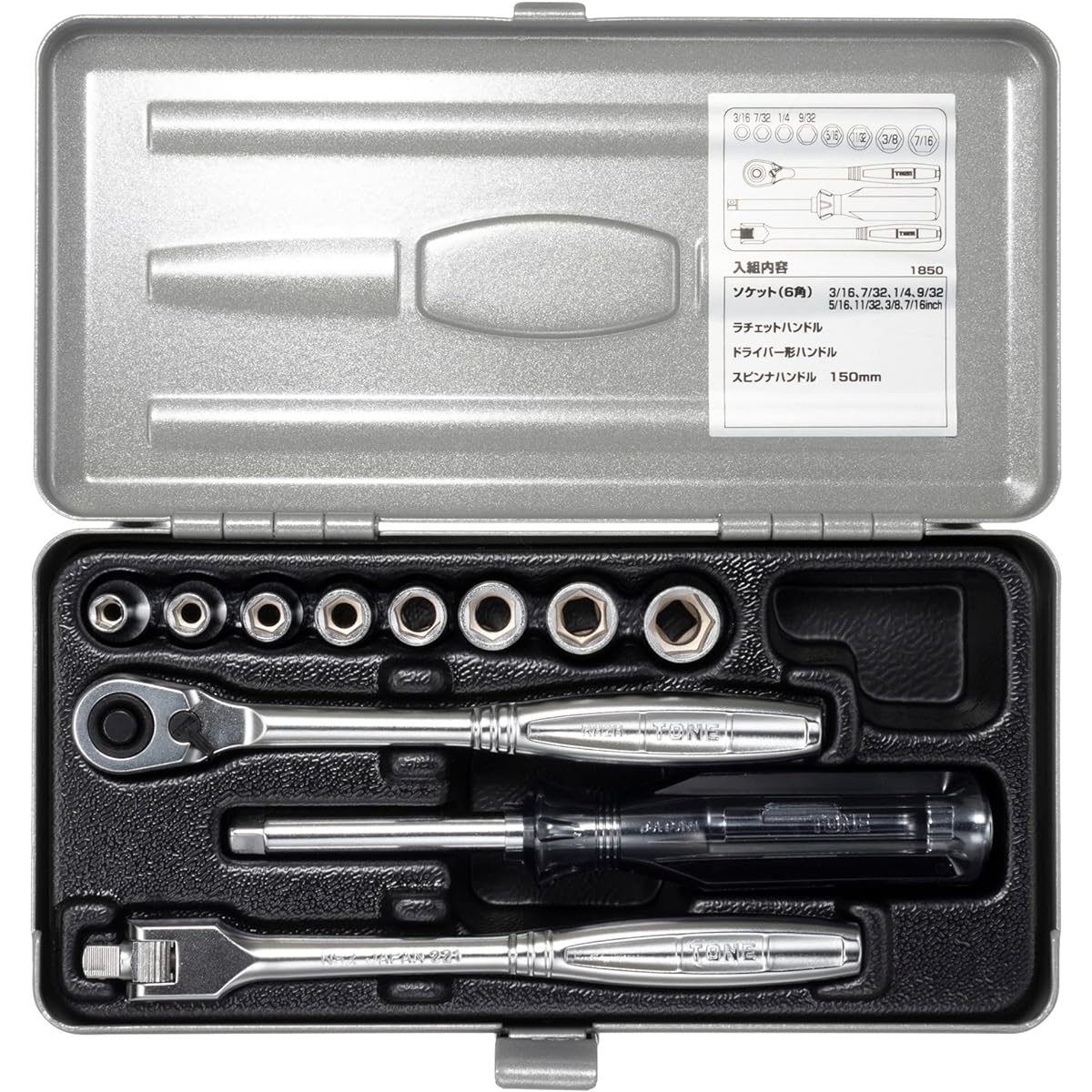 TONE Socket Wrench Set 1850 Drive 6.35mm (1/4") Silver Inch Contents 11 items