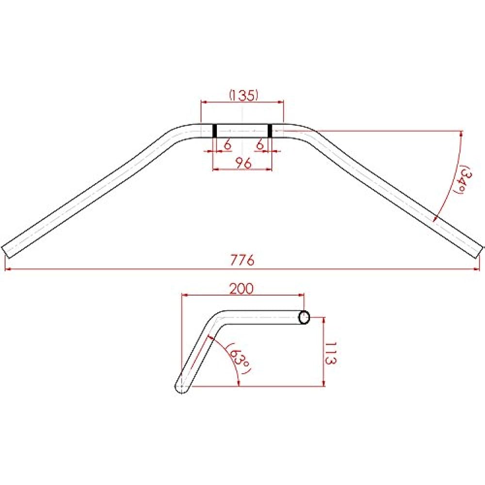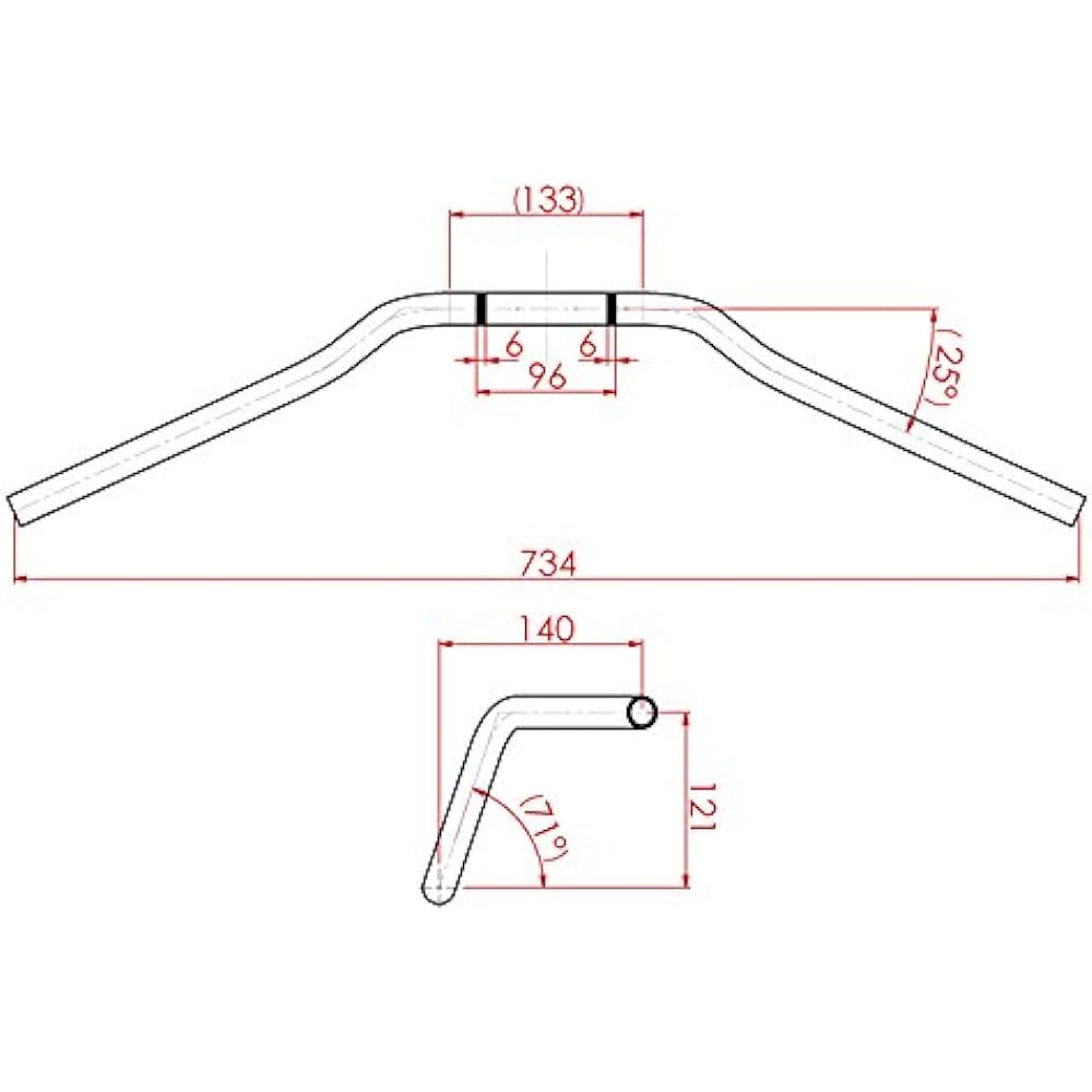 Compatible models: General purpose (general purpose handlebar) EFFEX Super Bar European Type-3 Material: Steel, Color (Surface treatment): Black plating Specifications: Width 734 x Height 121 x Depth (pull) 140 mm, Aperture angle 25 degrees × Standing angle 71 degrees, outer diameter Φ22.2, inner diameter Φ18