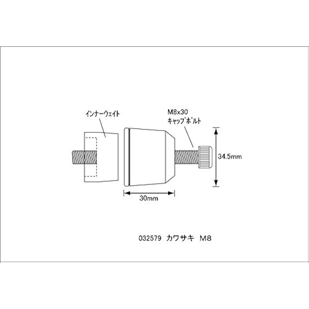 Compatible with Kawasaki genuine handlebar 8mm bar end hole. Φ34.5mm (maximum diameter) Weight: Approximately 120g per piece