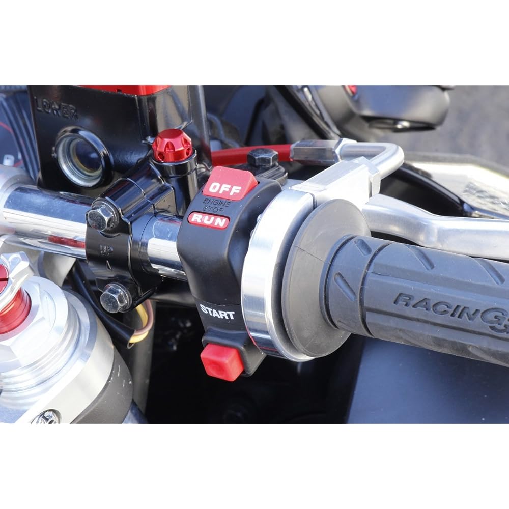 This is a slim type switch kit with a width of approximately 22mm that is effective when replacing with a high throttle kit etc. Ideal for use as an engine stop switch (kill switch) and starter switch. Brake switch wiring is also included. Precautions for use *It is necessary to drill a hole in the handle for the anti-rotation protrusion.