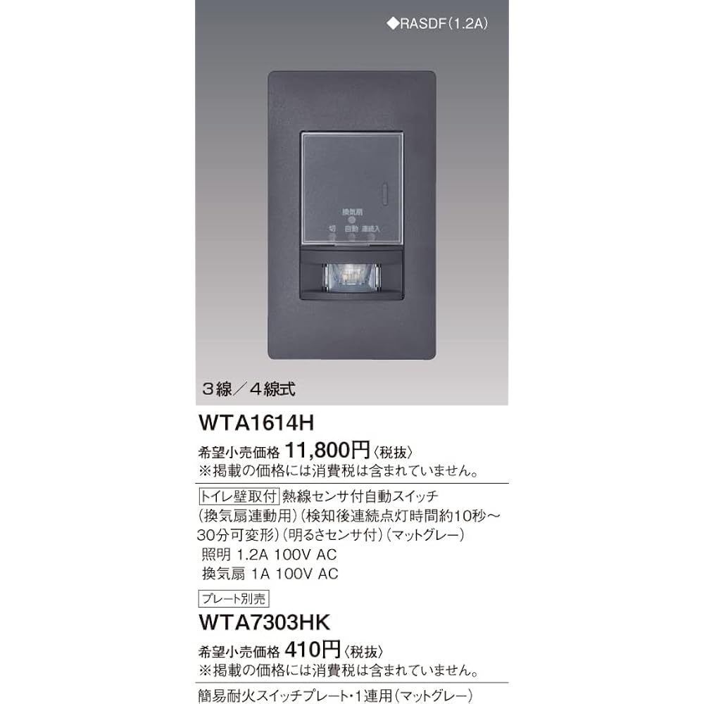 Panasonic Toilet wall-mounted automatic switch with heat ray sensor for ventilation fan connection, matte gray WTA1614H