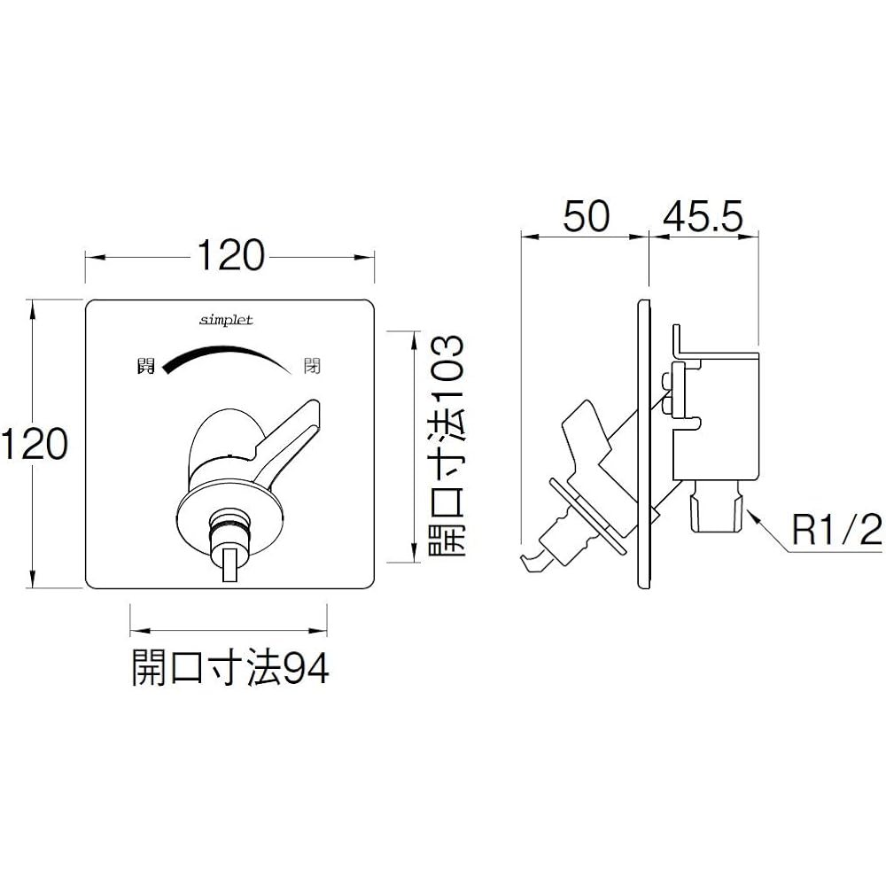 For floor piping. Equipped with a reliable auto-stop function that automatically stops the water even if the water supply hose comes off. Compatible with wall thicknesses of 15mm, 12.5mm and 9.5mm. With water hammer reduction mechanism. Connection thread dimensions: R1/2 indoor single faucet.