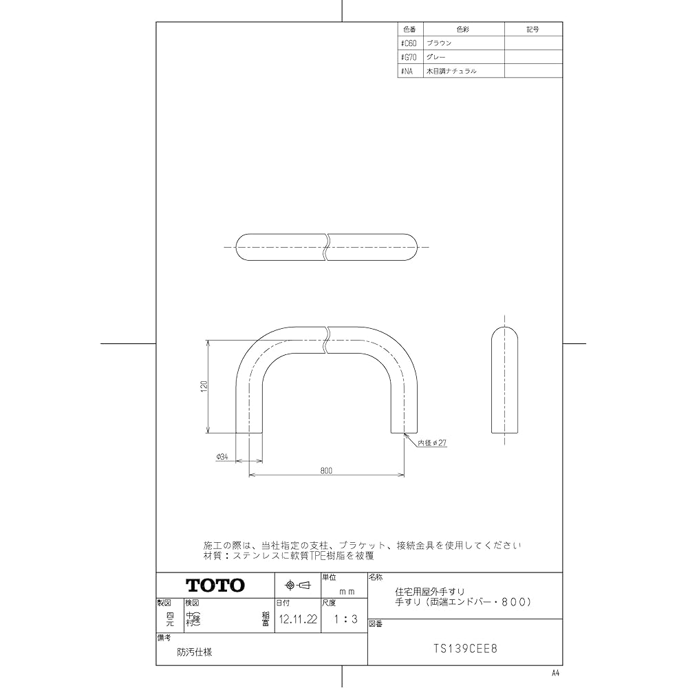 TOTO Residential Outdoor Handrail End Bars on Both Ends Length: 80cm Brown TS139CEE8#C60