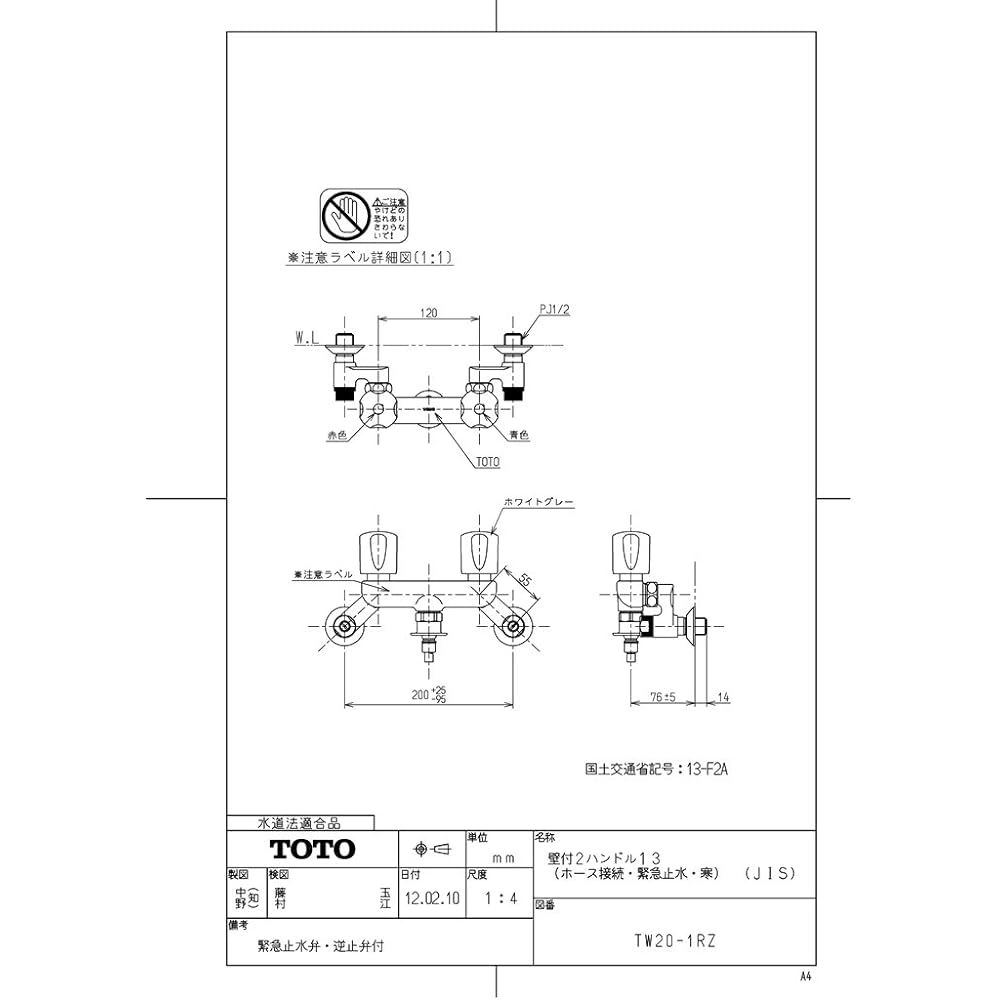 TOTO Wall Mounted 2 Handle 13 Cold Region Specification TW20-1RZ