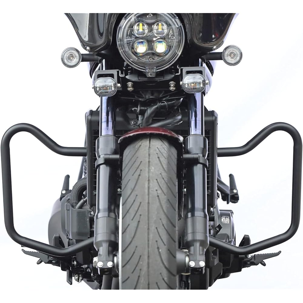 Introducing an engine guard that protects against minor falls such as standing up. The shape was designed to further protect the car body after verifying the conditions of actual falls over and over again. You can also attach fog lamps and pen tools, making it useful for touring. [Product specifications] ●Steel matte black finish ●Pipe diameter: 25.4mm [Compatible models] REBEL1100/DCT('21-/8BL-SC83)