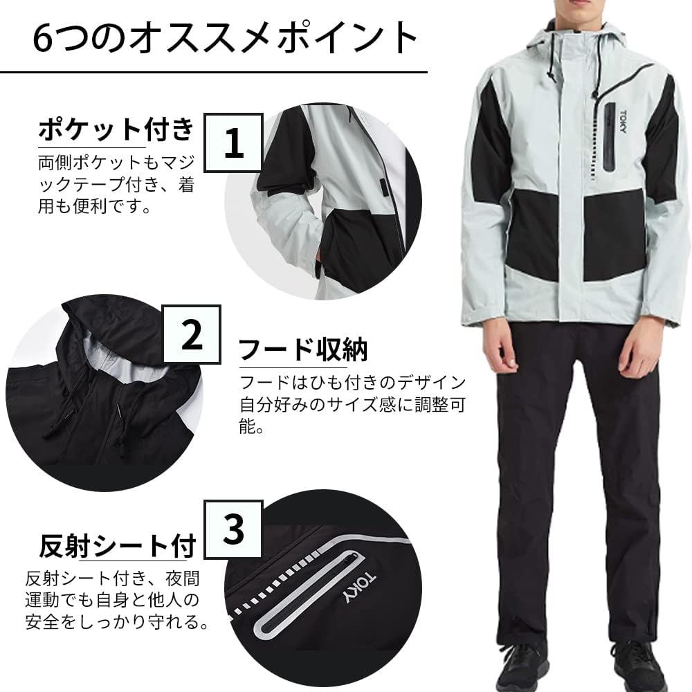 [Arashiyama] Rainwear, Rain Suit, Top and Bottom Set, Men's [Waterproof, Windproof, Lightweight, Includes Reflective Sheet] Golf Rainwear, Windbreaker, Kappa, Bike Rain Jacket, Outdoor Sports, Mountain Parka, Hiking, Fall/Winter, Unisex, Typhoon Protecti