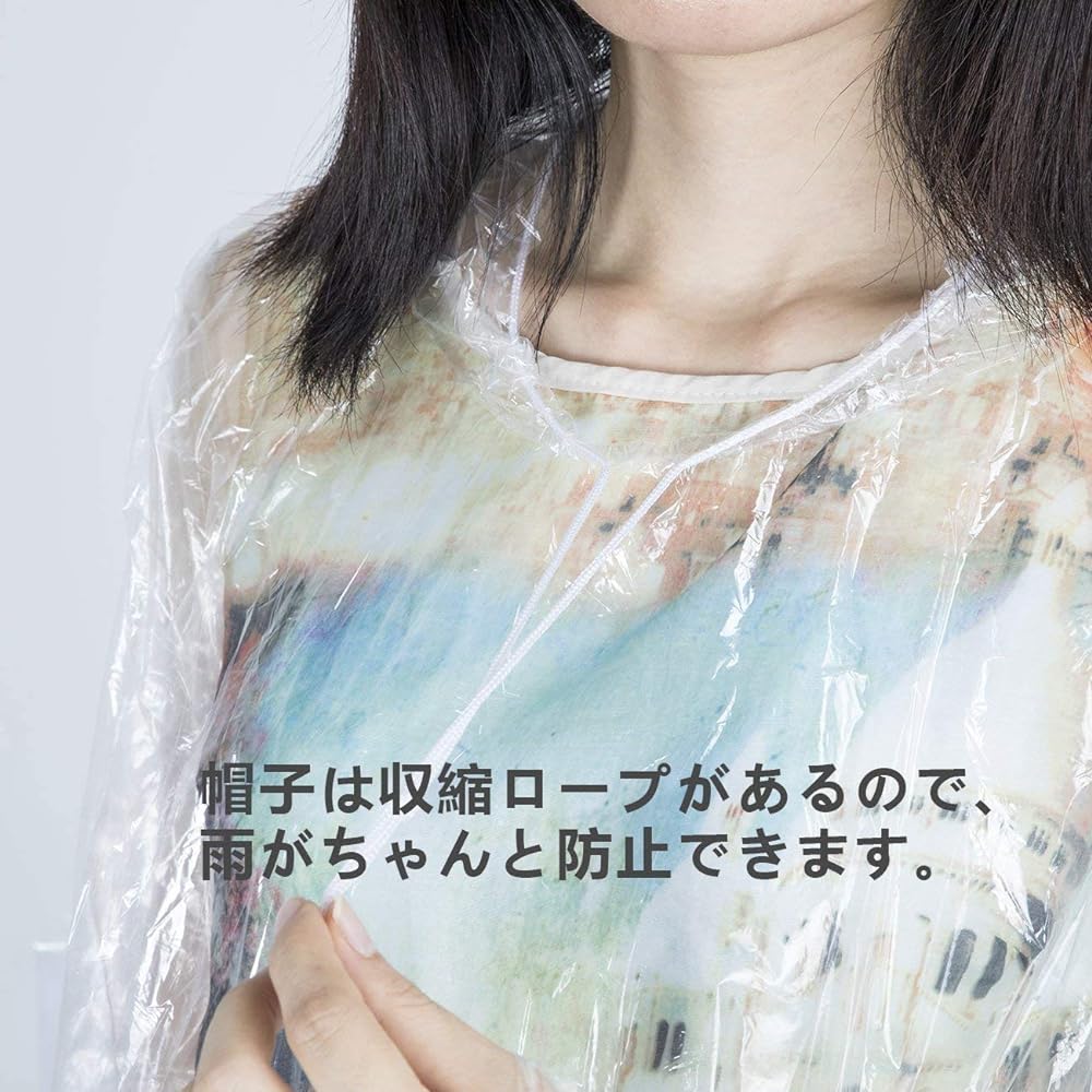 [Moli&Hani] Disposable Raincoat, Set of 20, Set of 50, Set of 100, Rope Included, Rain Cover, Transparent Rain Gear, Disaster Prevention Goods, Lightweight, Watching Spots, Commuting to School, Emergency Use, Travel, Unisex Free Size