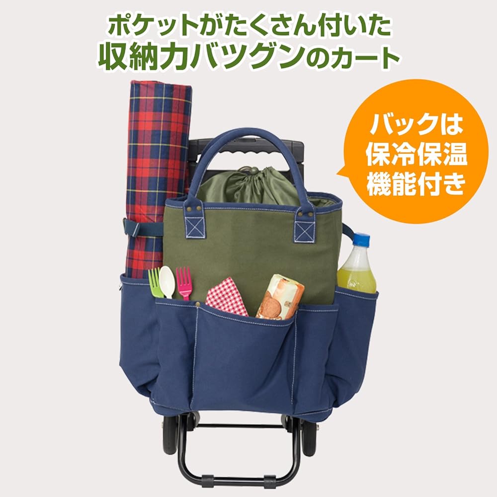●Picnic cart with canvas back and cart integrated ●Useful for a variety of situations such as shopping and picnics ●Cart handle height adjustment in 3 levels (63/85/90cm) ●Can also be used with only canvas back ● The bag has a cold/thermal insulating function ●A cart with lots of pockets and excellent storage capacity ●The opening of the bag is a drawstring type ●Comes with an umbrella holder for peace of mind on rainy days ●The frame can be folded compactly when not in use