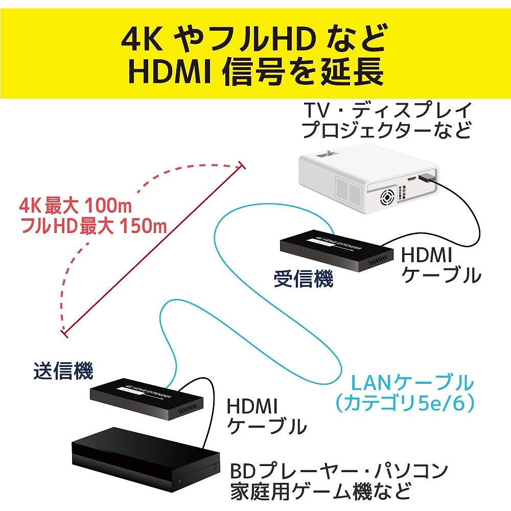 Can transmit 4K (4:4:4) HDMI signals up to 100m (150m at full HD resolution). A LAN cable (Cat 5e/6) is used to connect the transmitter and receiver. Extend HDMI/IR signals with a single LAN cable. HDCP2.2, CEC compatible. Supports HDR10, broadcast HLG (Hybrid Log Gamma), and DolbyVision. Compatible with Dolby TrueHD, DTS-HD Master Audio, and PCM (~7.1ch). AC adapter with screw lock included as standard. *This product cannot be used on multiple units. *HDMI cable, LAN cable, and audio cable are not included with this product. *Please use a Premium HDMI cable with a maximum length of 3m to connect this product. *Please use a UTP cable for the LAN cable. (Do not use STP cables such as CAT 7).