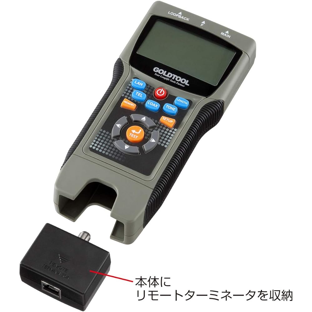 You can check the LAN cable connection status (straight/cross, open, short, split) and the consistency of pair wiring on the LCD display. It can measure cable length and has a memory function that can store up to 4 measured values. A remote terminator is housed inside the main unit and can be removed if necessary, making it easy to check installed cables. This tester is indispensable for network construction and has a built-in signal generation function for identification with a probe. Size: W98 x D205 x H40mm Weight: Approximately 310g (not including batteries) Accessories: Exclusive carrying case, TEL attachment, 006P 9V battery x 1 (for testing), instruction manual, warranty card