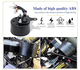 Anti-glare LCD screen digital bike speedometer, say goodbye to the dizziness problem of night driving. Function: This digital bike speedometer has multiple indicator lights that function as left/right turn signal, high beam, position light and N light. UV protection, anti-glare LCD screen allows you to see clearly day or night. HIGH QUALITY MATERIAL: Our digital bike speedometer is made of high quality abs, high quality and durable. It's also waterproof, shockproof, lightning-proof, and high-voltage. Specifications: Working voltage: 8-18V. Rated voltage: DC 12V. Speed range: 0~199km/h. The pointer indicates the speed range: 0-12000. Digital display range: 0-99999.9km. Backlight: Blue Size: 3.5 x 3.5 x 2 inches. Package Content: 1 x Digital Bike Speedometer 1 x Sensor Cable 2 x Magnetic Steel 1 x speedometer bracket 1 x Speed Sensor Bracket Instruction manual x 1 [Note] Please check the specifications before purchasing. If you have any installation problems, we recommend going to your local professional repair shop. It can solve many problems and save your valuable time during the installation process.