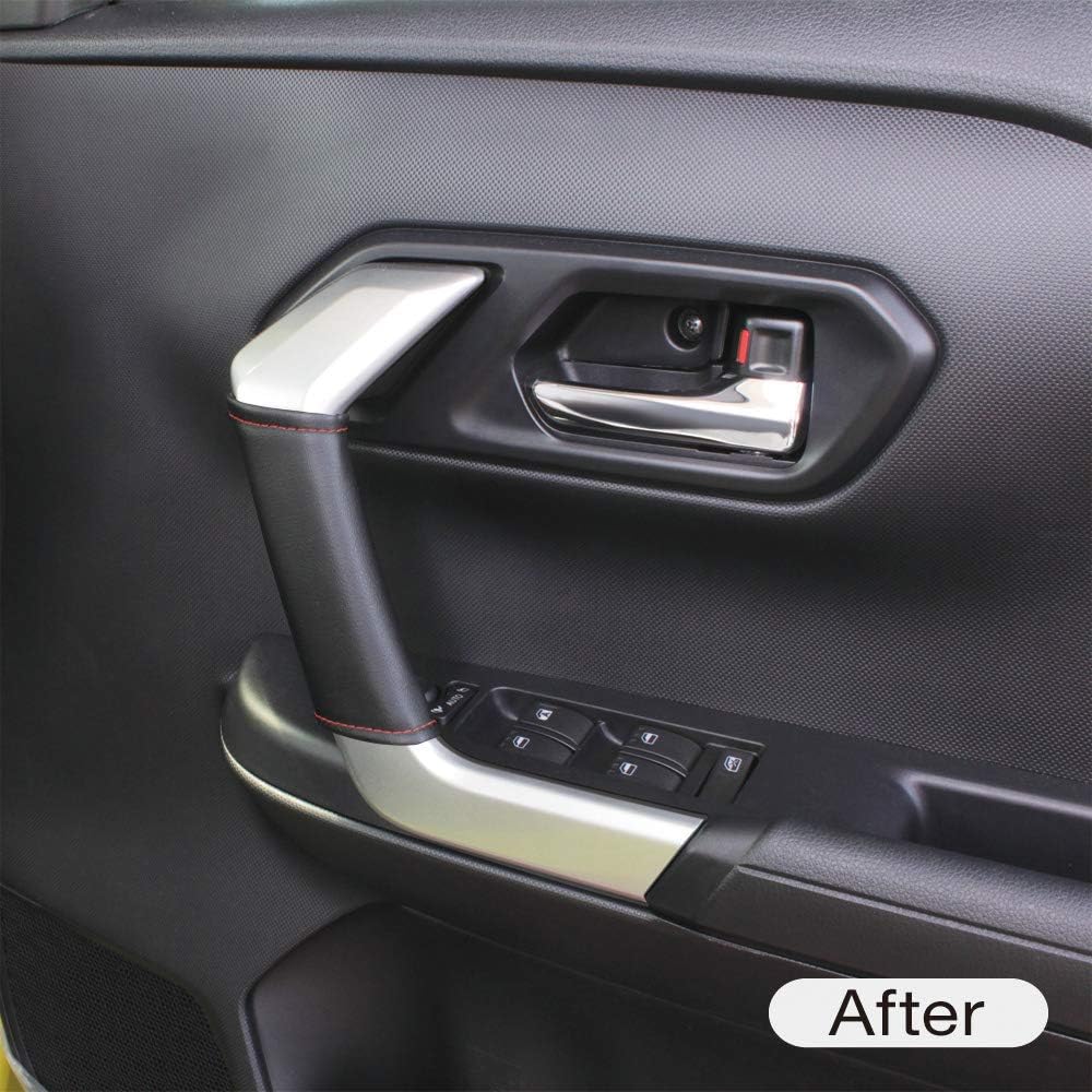 A grip cover that can be attached to the door handle of Rise Rocky (A200/A210 series) right-hand drive cars. This is a set of 2, one for the driver's side and one for the passenger's side. Specially designed to fit perfectly on the door grip. Easy to install, just wrap it around and attach with Velcro. Red stitching is applied to the leather textured fabric that matches the interior. [Please check before purchasing] This product is for Rise Rocky (A200/A210 series) right-hand drive vehicles only. It may not be compatible with vehicles that have undergone minor changes after the survey date (August 2020).