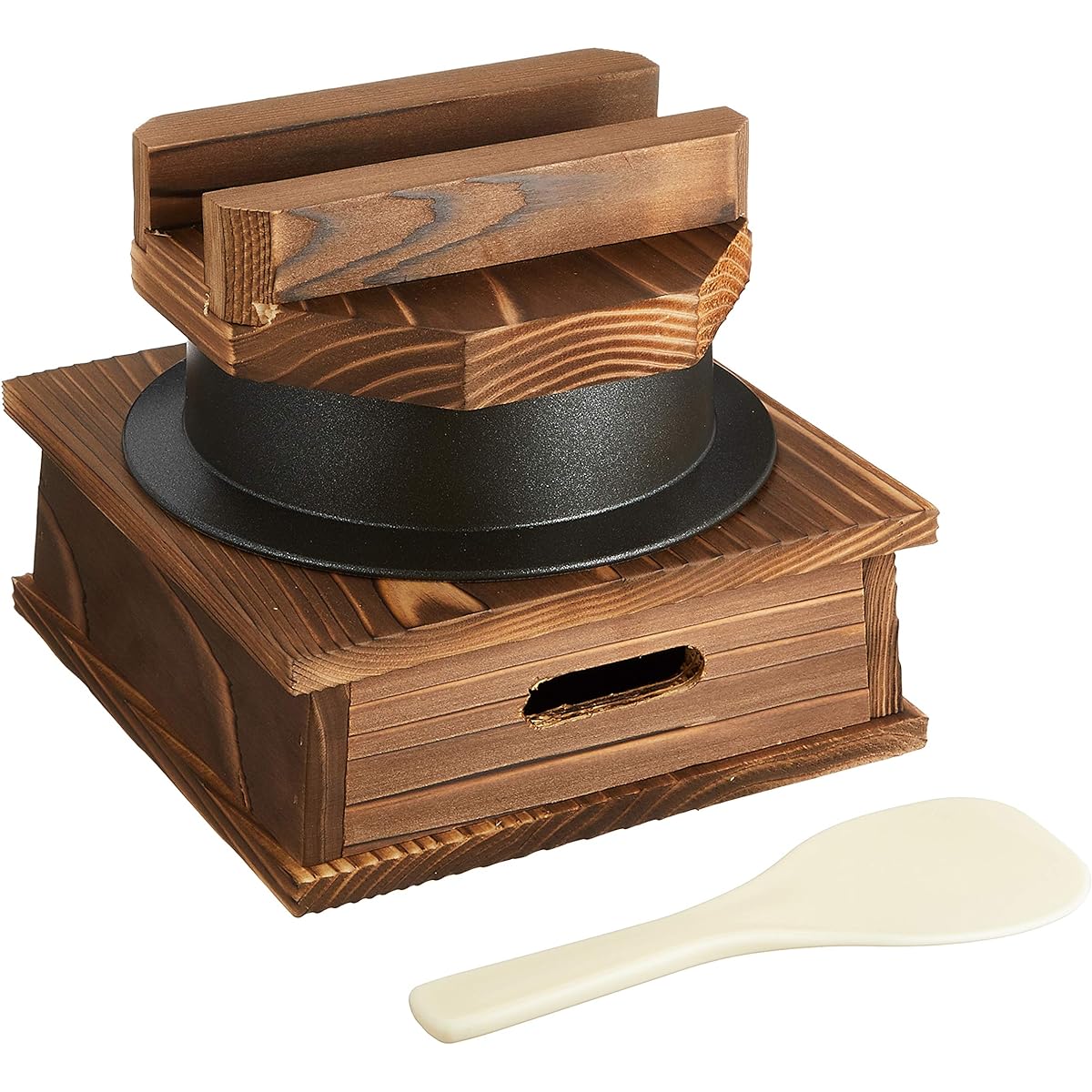 External dimensions: 163×163×H145mm Pot: φ155×75mm Diameter: φ121mm・Inner dimensions: Diameter: φ115mm Product weight: 800g Material: Aluminum fluorine processed, wood