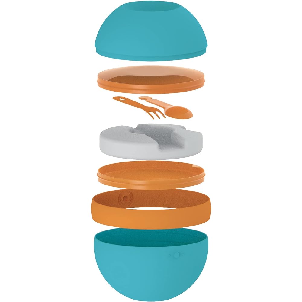 Bowl 565ml, airtight lid, fork and spoon (tongs), ice pack, salad bowl 780ml. A cute round lunch box that allows you to carry your salad in style. Comes with an ice pack, perfect for outdoor use.