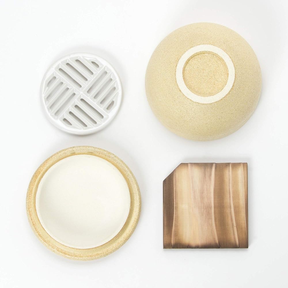 Iga ware originated 1,300 years ago, when a kiln was established in Marubashira, Iga City during the Tenpyo era. Nagaten's kiln was built on this site in 1832. Adhering to the philosophy that "the dining table is a place for play," we work hard every day to contribute to Japan's food culture. As it is handmade, there may be slight differences in size, color, etc. ●Iga's rough clay, which breathes like a wooden ohitsu, is perfect for preserving rice. ●If you put it in the microwave, you can reheat it as fluffy as if it had just been cooked. ●If you use the included ceramic drainer, , can also be used for steamed dishes such as warmed vegetables ●Comes with recipes, wooden board, and ceramic grates ●Please allow slight differences in size, weight, and color due to firing