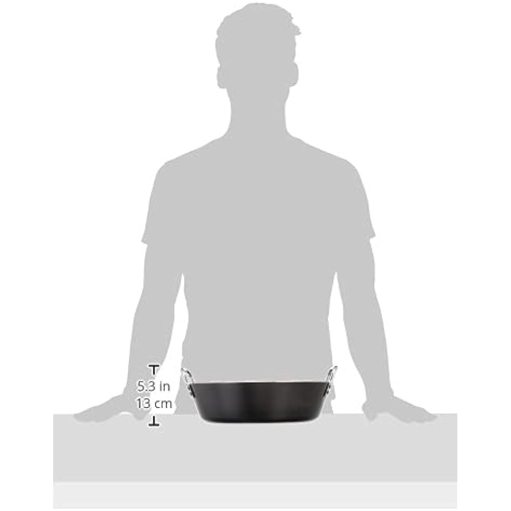 Size: 12 x 34 x 33 cm Material: Iron Body (black steel plate) Handle (round bar) Surface treatment: Clear coating Plate thickness: 3.2 mm Pot depth: 8 cm