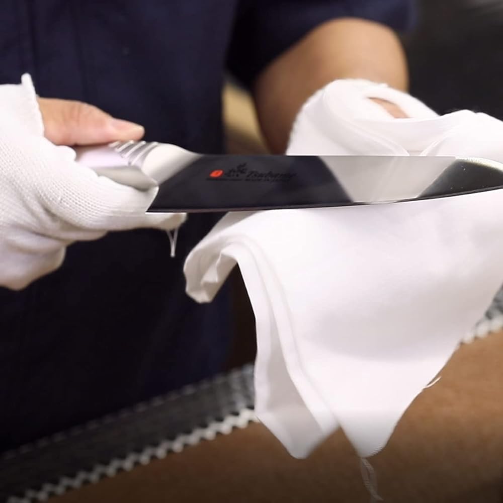 Manufactured in Tsubame-Sanjo, Niigata Prefecture, which is famous for making cutlery. ``Tsubame'' is made by a skilled craftsman and is unique in that the blade goes into the food without any resistance. Since it is made of stainless steel, there is no joint with the handle, making it durable and hygienic. Because the blade is made of molybdenum steel, it has excellent high-temperature strength and wear resistance, and is resistant to rust and maintains its sharpness. The handle is 18-8 stainless steel and is hygienic.