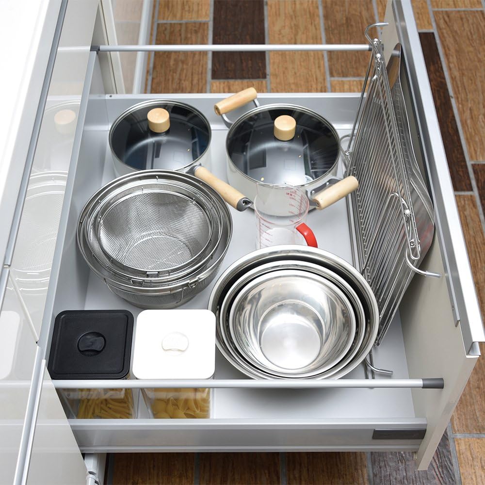 Folds up compactly when not in use. It is a foldable drainer. The water droplets that fall will flow down the tray and into the sink, which is very convenient. Made of stable and durable stainless steel.