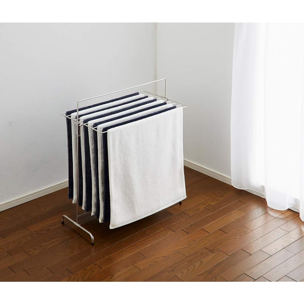 Stainless steel accessory drying stand that can hang plenty of towels and bath towels.A large type that can hang 10 bath towels. When there is not much laundry to be done, you can use only one side. Space can be used effectively. When not in use, the drying section can be folded for compact storage. Made of rust-resistant stainless steel.