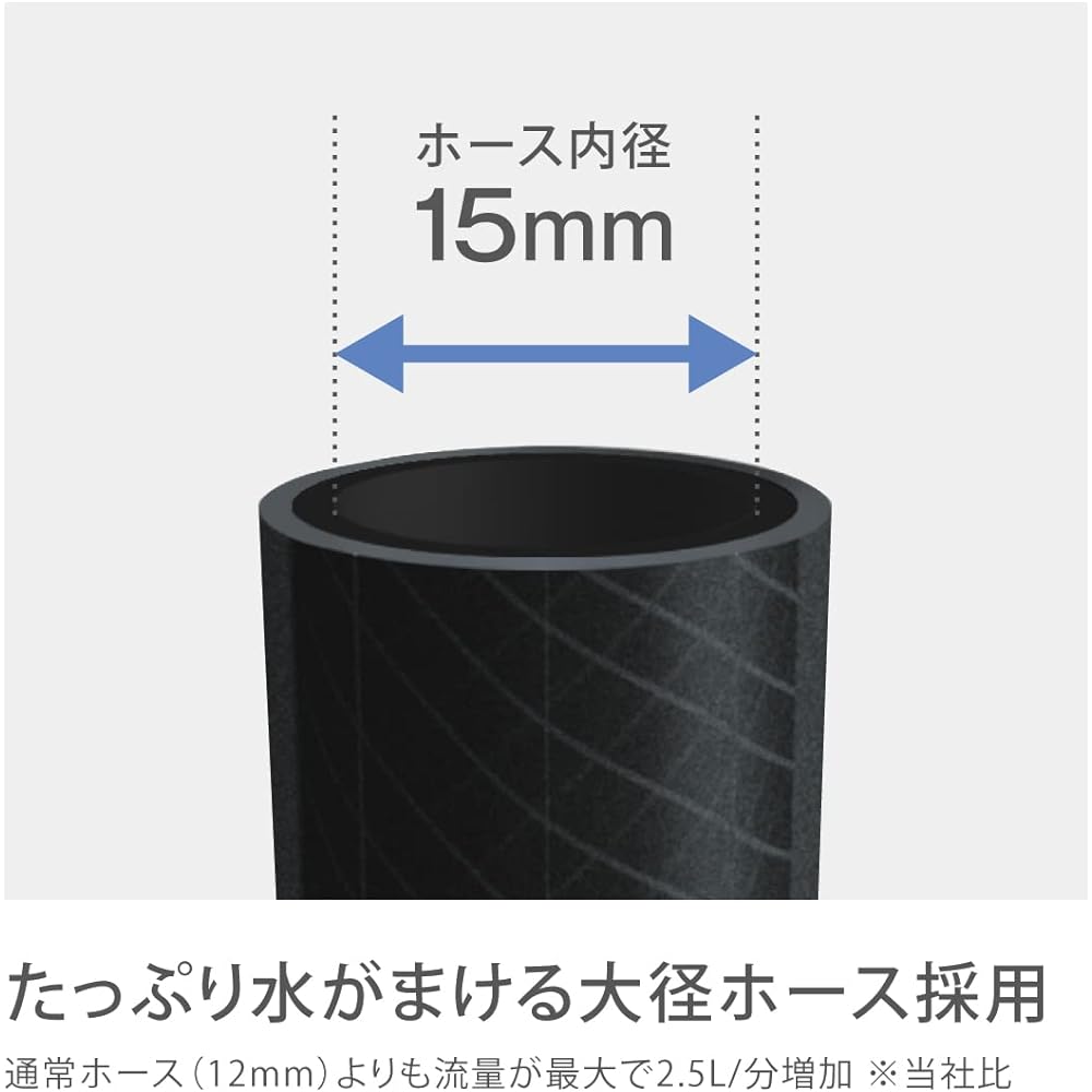 This is a watering hose reel that uses a pressure-resistant and algae-proof smooth hose that prevents the hose from sticking. Since it uses a hose with an inner diameter of 15 mm, it can be used with a higher flow rate than a regular hose. It features 5 water types specifically designed for car washing and cleaning work, and the flow rate can be adjusted using the knob on hand. No tools required, connection to faucet is possible in simple steps.