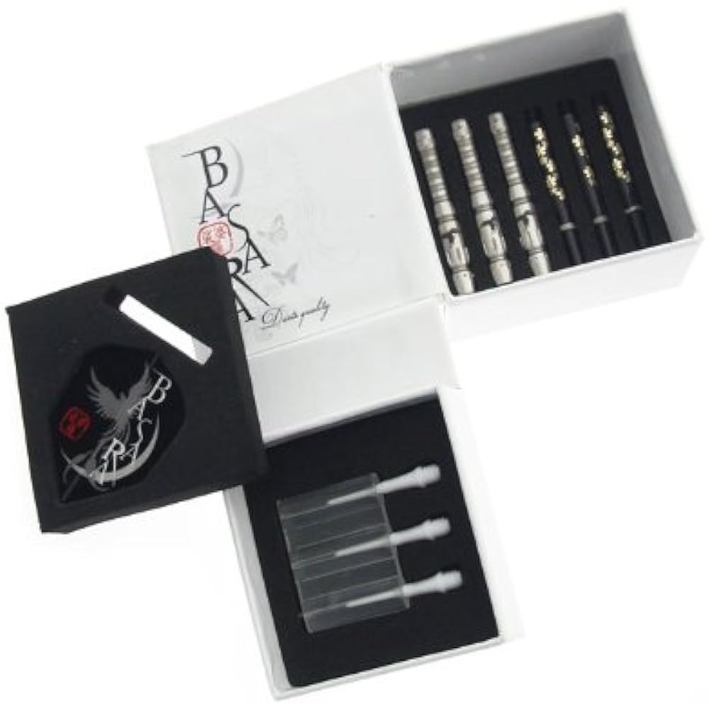 of This model combines the performance of the straight type and torpedo type, resulting in a work that focuses on grip, good release, and sharp flight. The grip is straight, but the taper at the front of the barrel provides a secure fit that was previously absent from straight grips. In addition, the main cut is a double ring with an edged delta cut. On the other hand, it has a sharp grip, but it also has a very good grip and goes straight to the target. In addition to a stable grip and good release, this model weighs 18g and achieves surprisingly straightforward and sharp flight. [Set contents] UltimaDarts shaft, Lip point, flight with BASARA logo