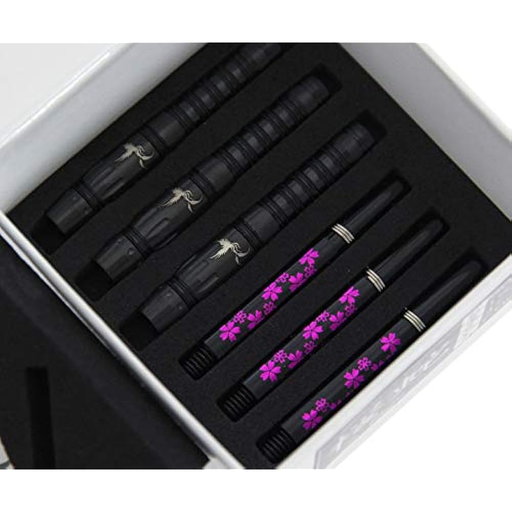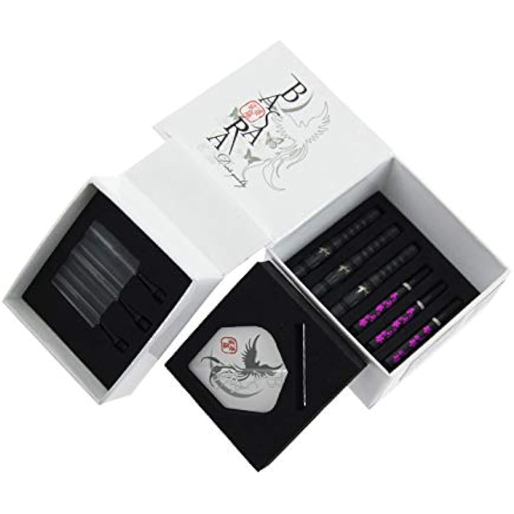 ■Product specifications Material: Tungsten 90% Total length: 47.7mm Maximum diameter: 7.0mm Barrel weight: 18.0g Shape: Torpedo Notch: Shark cut Vertical cut Delta cut Standard: 2BA ■ BASARA "Oja" Black 2BABASARA [Black] series is black coating type. Barrel specs are the same as the silver type. A glossy solid black is used for the coating. This model combines the performance of the straight type and torpedo type, resulting in a work that focuses on grip, good release, and sharp flight. The grip is straight, but the taper at the front of the barrel provides a secure fit that was previously absent from straight grips. In addition, the main cut is a double ring with an edged delta cut. On the other hand, it has a sharp grip, but it also has a very good grip and goes straight to the target. In addition to a stable grip and good release, this model, which weighs 18g, provides a surprisingly straightforward and sharp flight. ■Specification Material: Tungsten 90% Total length: 47.7mm Maximum diameter: 7.0mm Barrel weight: 18.0g Standard: 2BA ■Contents Barrel x 3 (1 set) Flight x 3 (1 set) Shaft x 3 (1 set) Tip x 3 (1 set)