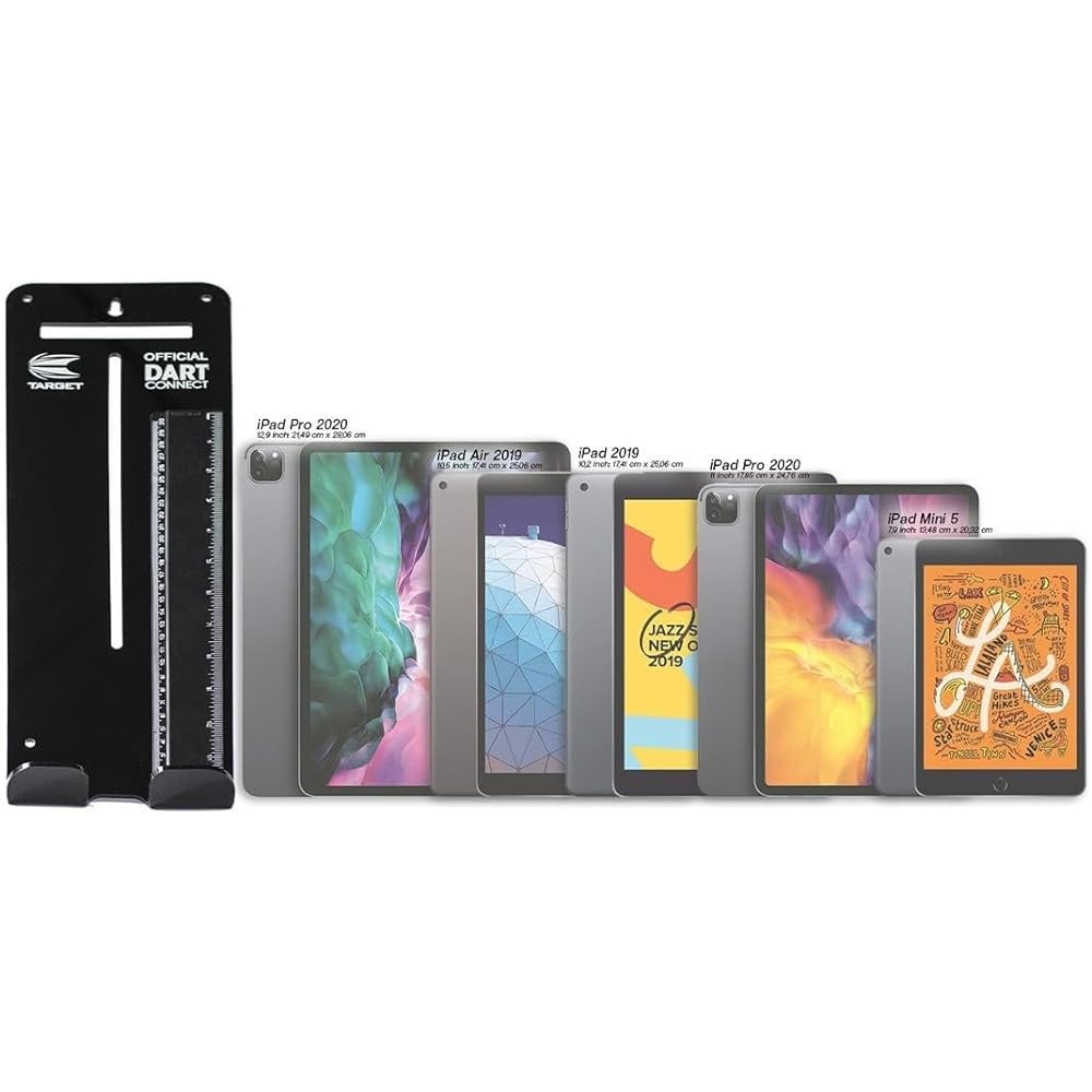 ■ TARGET SCORING TABLET HOLDERTARGET SCORING TABLET HOLDER is made of durable polycarbonate and allows you to display game scores hands-free by using apps such as DART CONNECT. Can be attached to tablets or smartphones up to 14 inches. *TARGET SCORING TABLET HOLDER is officially approved by Dart Connect. Safety Warning Safe.
