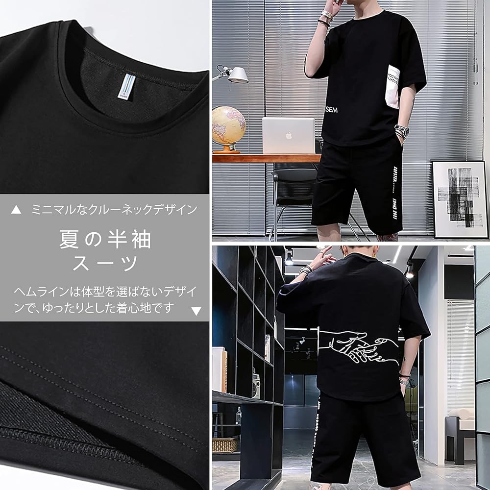 [SUKESEM] Men's Jersey Top and Bottom Set, Short Sleeve T-Shirt Setup, Men's Large Size T-Shirt, Half Pants, Casual Sportswear, Room Wear, Stylish, Spring, Summer, Autumn, Loungewear
