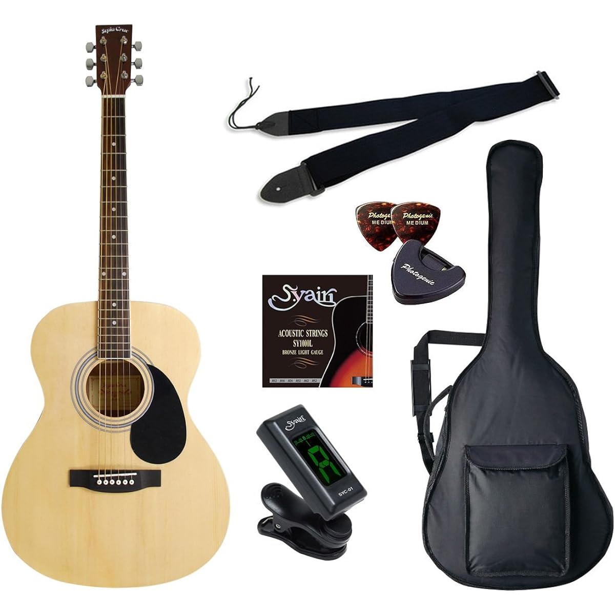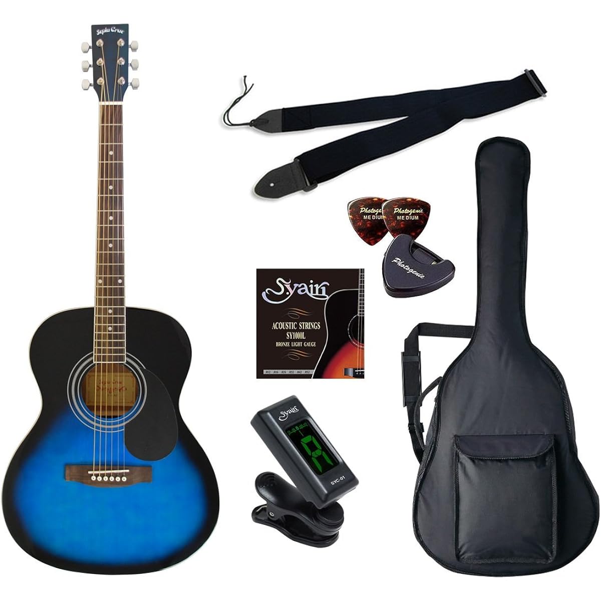 A great value introductory set that includes the minimum necessary items for playing! You can start playing the guitar the day you receive it! A clip-type tuner that is convenient for tuning the strings. Don't worry if the string breaks while playing. Spare strings are also included.The shape, color, packaging, etc. of the set accessories may differ from the photo, but there is no difference in quality.
